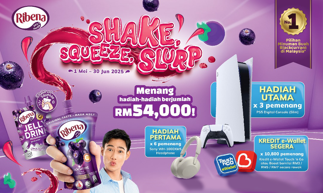 - Kempen Ribena ‘SHAKE SQUEEZE SLURP’ (“Kempen / Program Penebusan / Peraduan”) adalah anjuran Suntory Beverage & Food Malaysia Sdn Bhd (“Penganjur”) dan terbuka kepada pemastautin tetap Malaysia atau warganegara Malaysia dengan MyKad yang sah yang berumur lapan belas tahun dan ke atas (“Peserta ”).
